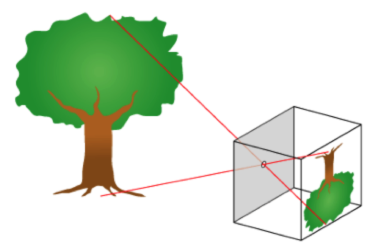 그림 "카메라 모델 1"으로 표현하는 것이 정확하지만, 그림이 너무 크고 영상이 뒤집히는 것을 항상 생각해야 합니다.