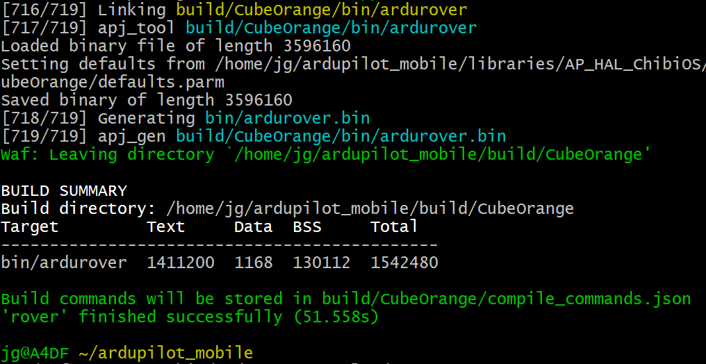 빌드 명령에는 연결된 보드에 빌드된 이진 파일을 업로드하기 위한 --upload 옵션이 있습니다. 이 옵션은 Pixhawk 및 Linux 기반 보드에서 지원됩니다.