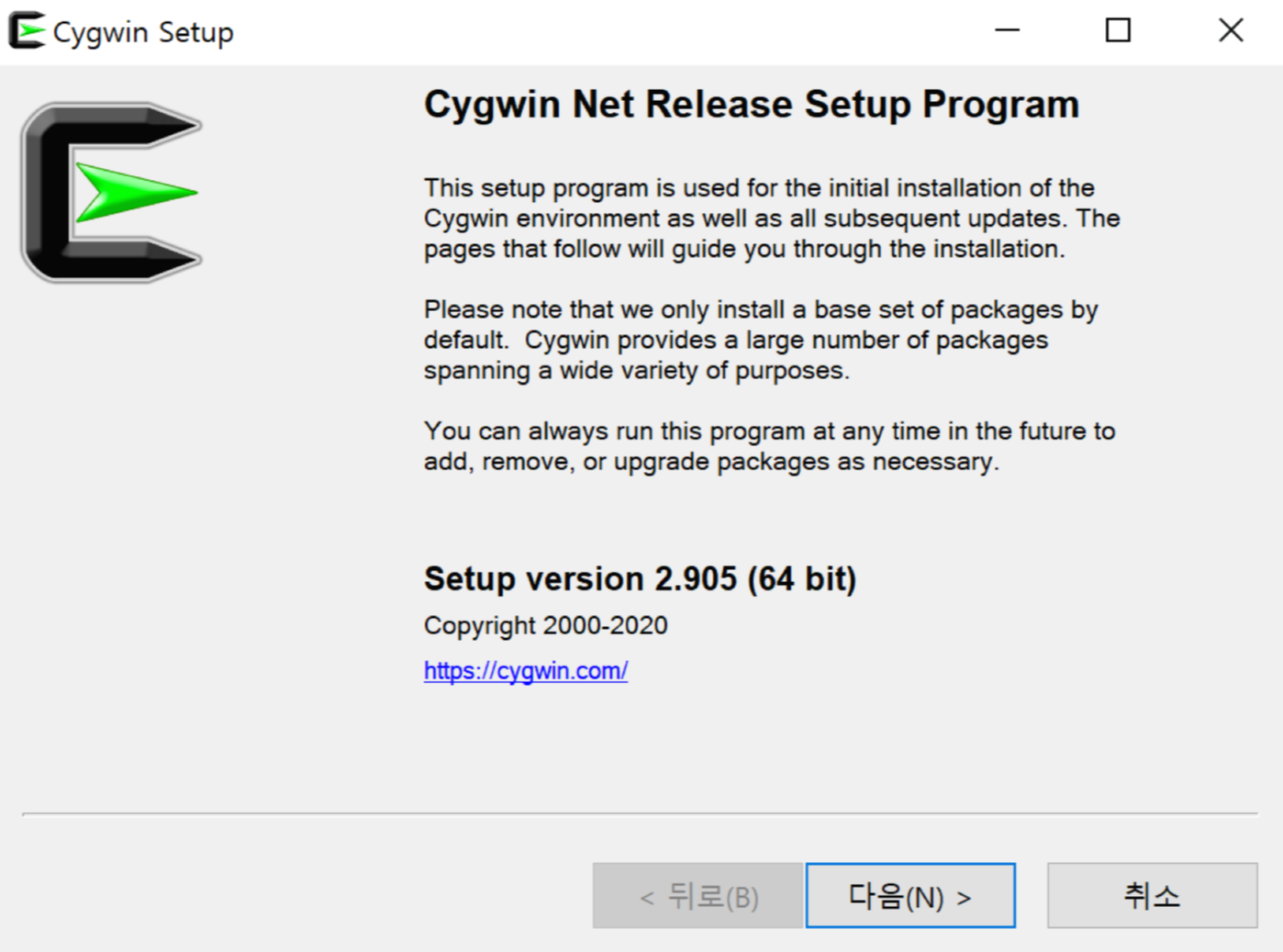 1. www.cygwin.com/install.html에 웹 브라우저를 열고 setup-x86_64.exe를 실행합니다.