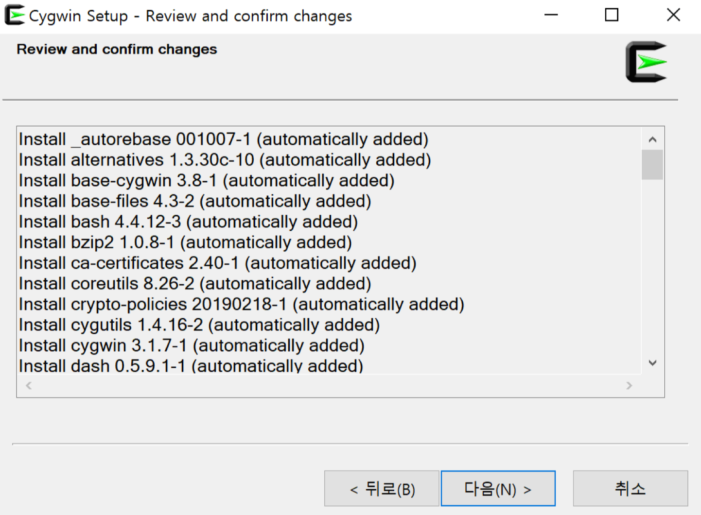 4. 위의 표에 있는 모든 패키지를 선택했다면, 다음 버튼을 눌러 패키지 설치를 시작합니다.
