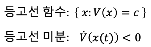 여기서 우리는 V(x)를 "Lyapunov function" 이라고 합니다.