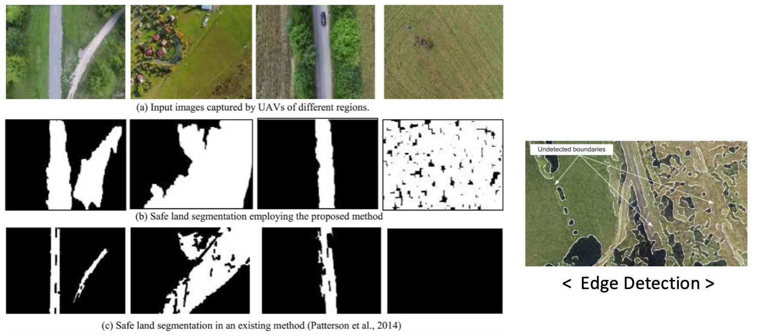 현재 UAVs는 Millitary service 뿐만 아니라, natural disaster monitoring (자연재해 감시), territories protection(영토 보호), aerial photograpy(영상촬영), 그리고 vigilance in urban area(도시 지역의 경계) 등 다양한 분야에서 활용되고 있습니다. MEMs sensor, GPS 등의 발달은 이러한 소형 UAV들이 civilian application에 더 많이 활용되도록 만들었습니다. UAV는 비행을 하는 시스템이기 때문에, 센서가 작동하지 않는 환경에서의 비행이나 기체의 고장 등의 emergency 한 상황이 발생했을 때, 긴급하게 landing 장소를 찾아서 안전하게 착륙해야 합니다.