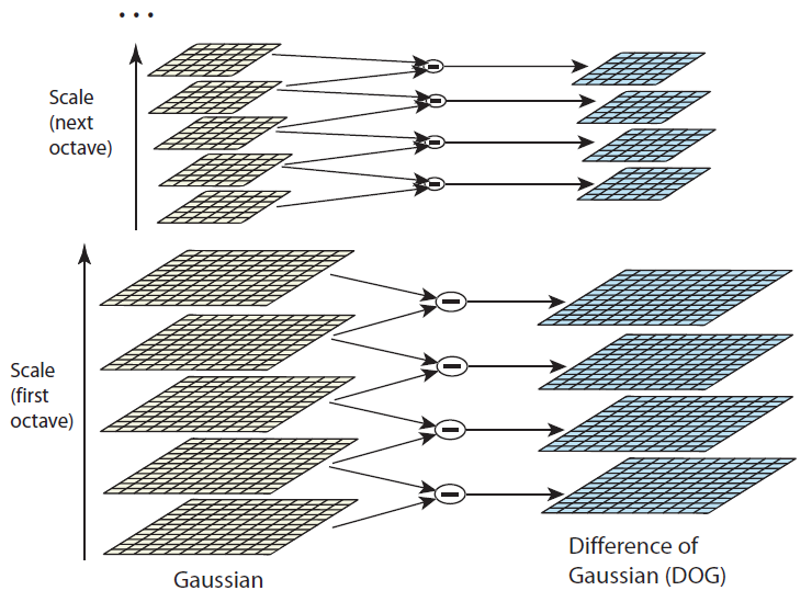 (1) Scale-space extrema detection (이미지의 크기를 변화시켜 극대점, 극소점 detection -> keypoint candidates 찾음)